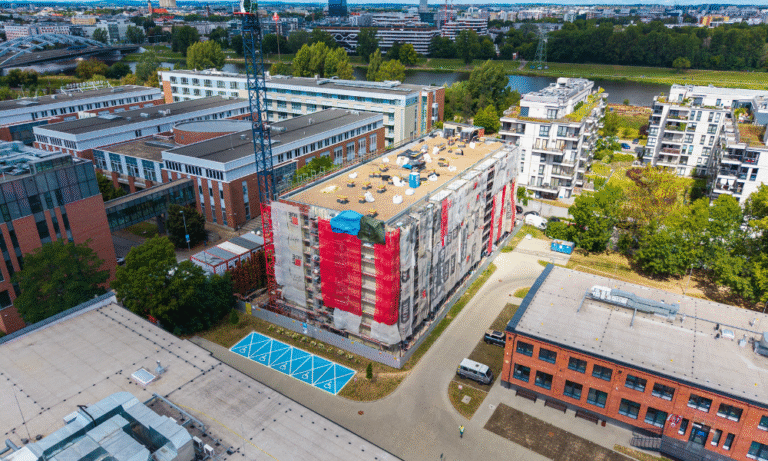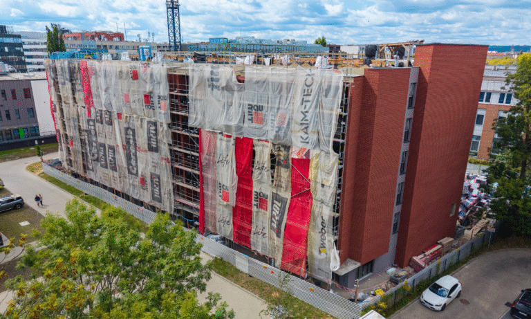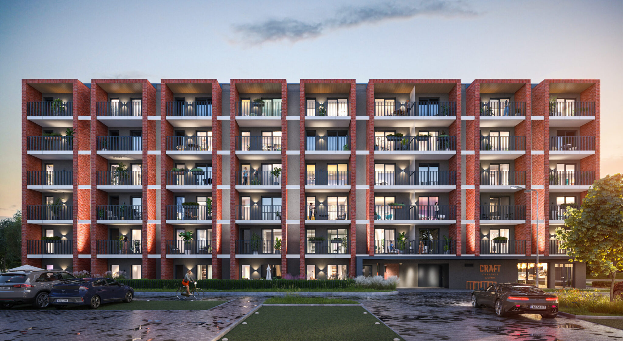 CRAFT ZABŁOCIE to pięć pięter na których rozlokowaliśmy 94 doskonale zaprojektowanych mieszkań z balkonem lub ogródkiem – wybór pozostawiamy Tobie. Elewacje budynku mają charakter ceglany z ciemnoszarym otynkowaniem. Doskonale współgrają z nimi rdzawo-rude elementy małej architektury wykonane z kortenu. Budynek przyciąga oczy charakterem, ale nie krzyczy – na tym polega nowoczesna elegancja.